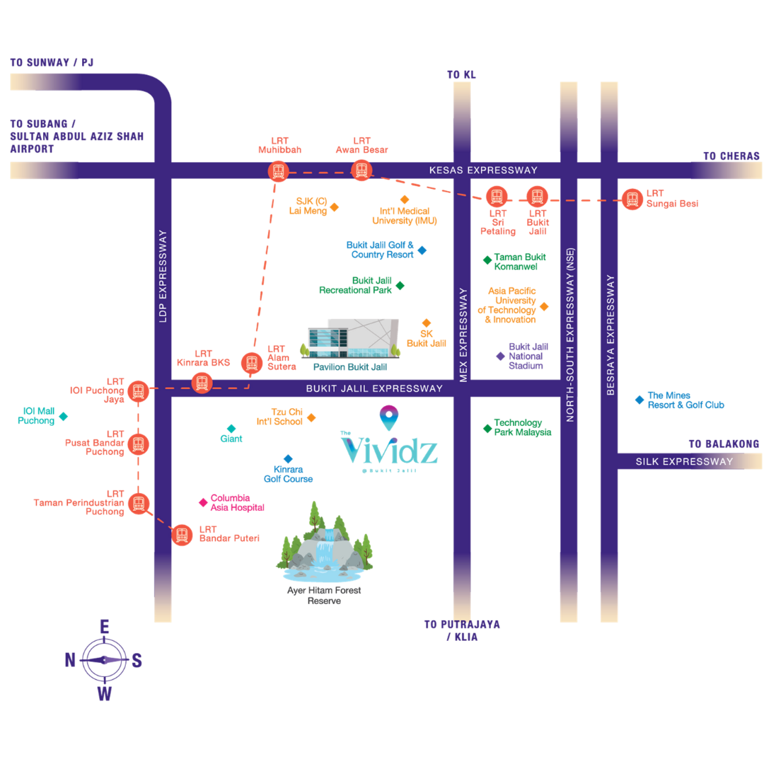 Vividz Bukit Jalil enjoys a highly strategic location within the vibrant KL Wellness City, offering residents exceptional accessibility and lifestyle convenience. Just 5 minutes from Pavilion Bukit Jalil, the development is surrounded by premier retail, leisure, and healthcare destinations. Seamlessly connected to major highways including Kesas, MEX, and the Bukit Jalil Highway, Vividz provides effortless connectivity to Kuala Lumpur and Petaling Jaya. As a GreenRE-certified development, it embodies sustainable urban living — blending wellness, connectivity, and eco-conscious design at the heart of Bukit Jalil.